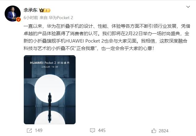 華為2024龍年首場(chǎng)新機(jī)發(fā)布會(huì)將于2月22日舉辦Pocket 2時(shí)尚盛典