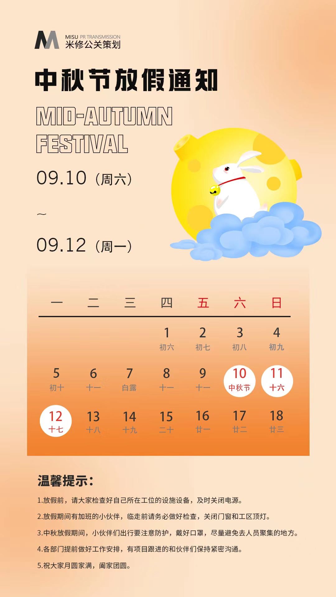 米修公關_中秋放假通知